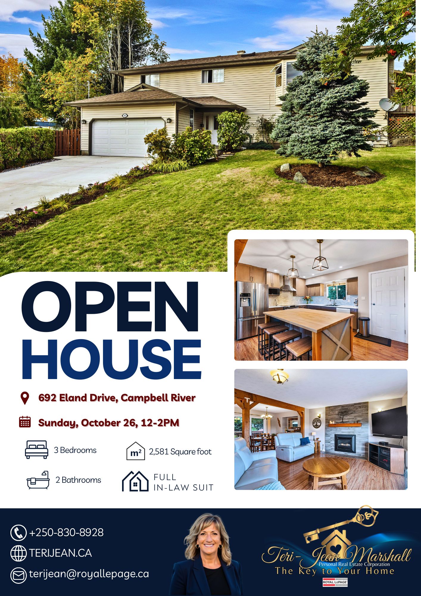 This spacious home offers a great combination of size and flexibility in a convenient location. With a brand-new hot water tank and important updates already completed—including newer windows, doors, and kitchen cabinets—this property delivers both comfort and peace of mind. The main level offers 3 large bedrooms and a bright, kitchen, dining, and living area with large windows that fill the space with natural light and offer charming views of Discovery Passage. The lower level adds significant value with a 2 bedroom suite —perfect for extended family, guests, or generating rental income. Both levels include cozy electric fireplaces, enhancing the warmth and character of the home. The garage, carport, and side-access RV parking offer exceptional storage and parking options rarely found at this price point. With a few modern touches, this home has the potential to shine—and at under $700,000, come view today as opportunities like this are becoming hard to find. More details